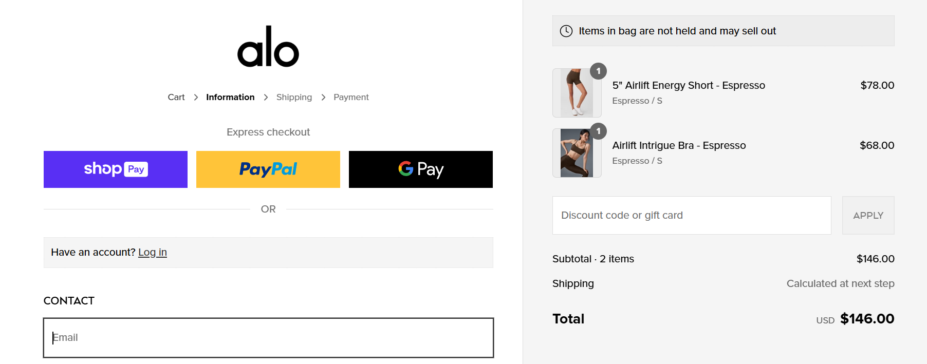 For example, when customers shop for items from Alo Yoga, they can even choose an express checkout to skip some steps of this process and order in seconds.