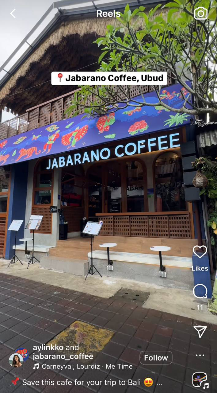 For example, below, you can see how a travel blogger recommends a coffee spot. An appealing Reel will certainly catch followers’ attention and motivate them to visit this place soon.