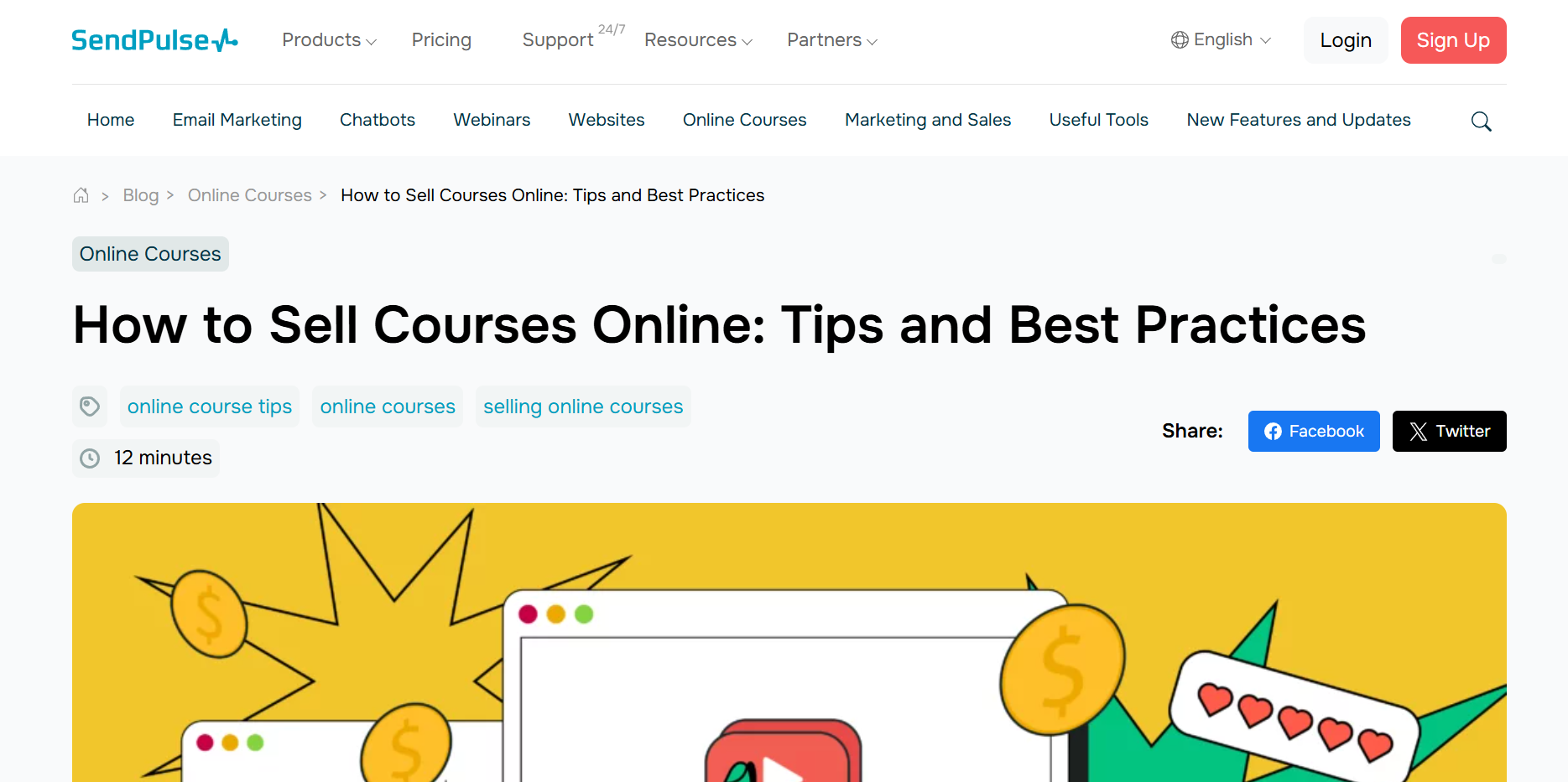 Let’s take a look at one of SendPulse’s blog posts. The company provides useful information and recommends the best online course builders, including the platform itself. This is the best way for users to discover this new service.