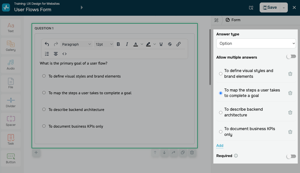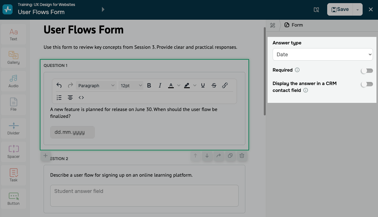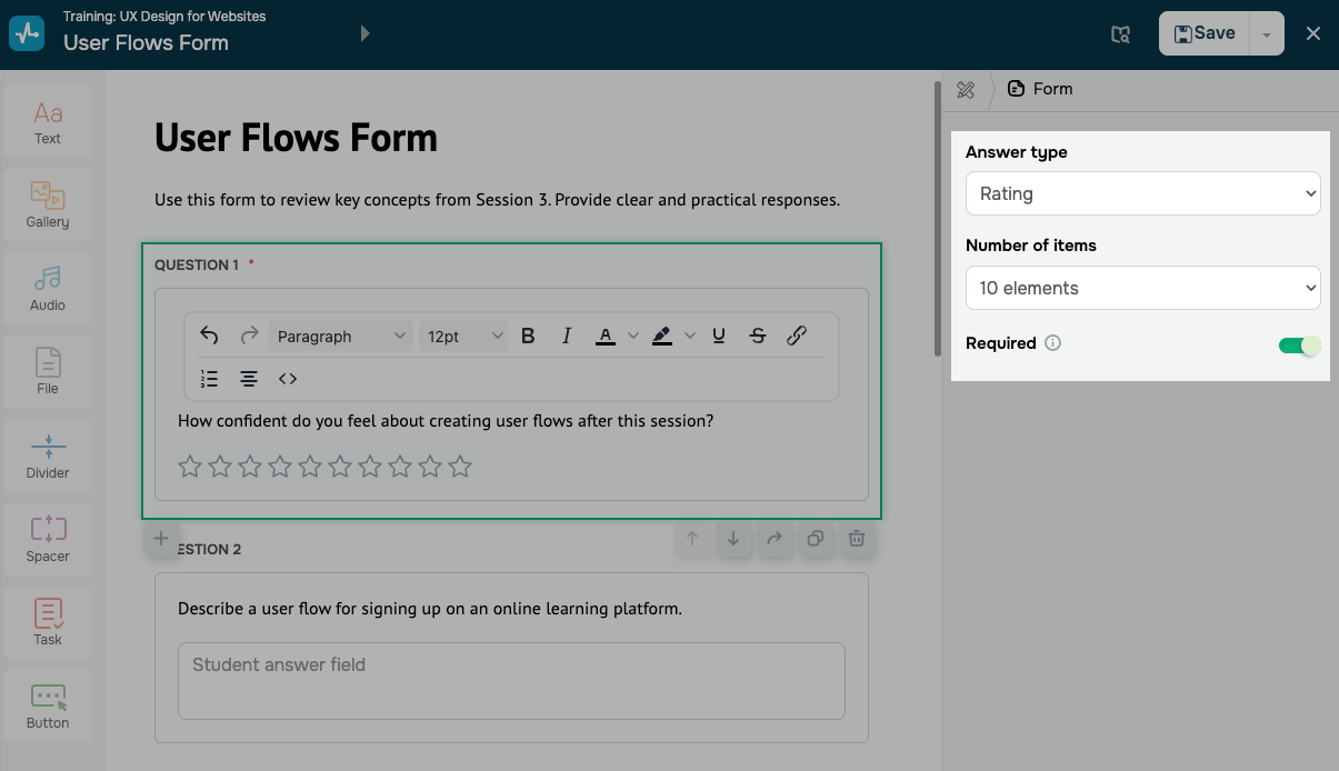 Utiliza el elemento Formulario en un curso para recopilar respuestas estructuradas de los estudiantes.
