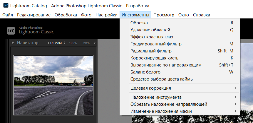 Загружаем изображение в библиотеку с помощью функции «Импорт» или путем перетаскивания файла. Переключаемся в раздел «Разработка» — здесь используем основные настройки: «Баланс белого», выставляем «Светлые области» на -25, «Тени» на +20, «Белые» на +20 и «Черные» на -25, а также играем с детализацией, а именно с резкостью и уменьшением шума.