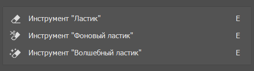 «Ластик» — стирает фрагменты таким образом, что удаленная область заполняется цветным или прозрачным фоном.