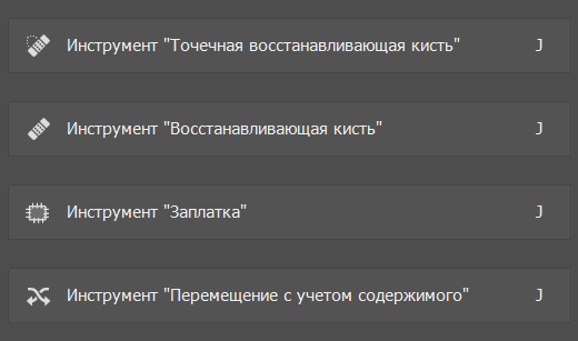 «Восстанавливающая кисть» — исправляет дефекты на картинке, заменяя их пикселями из другой части изображения, при этом рисунок переносится очень плавно. Эффект похож на тот, что делает инструмент «Штамп», но здесь другая техника нанесения. Зажимаете ALT, выбираете область и убираете лишний объект — это место закрашивается взятым ранее фрагментом.