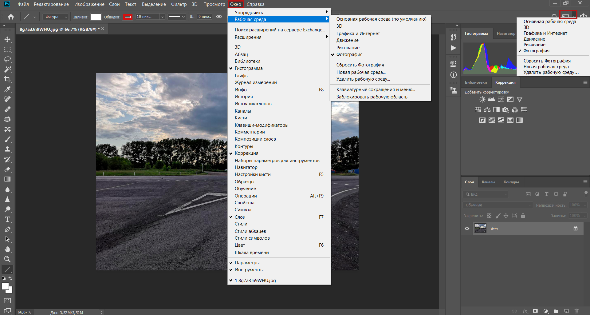 В списке вы увидите шесть вариантов — выбираем «Фотография». Это среда, в которой уже подготовлены необходимые нам инструменты. Также можете создать свой рабочий стол с любым набором средств для редактирования изображений и видео.