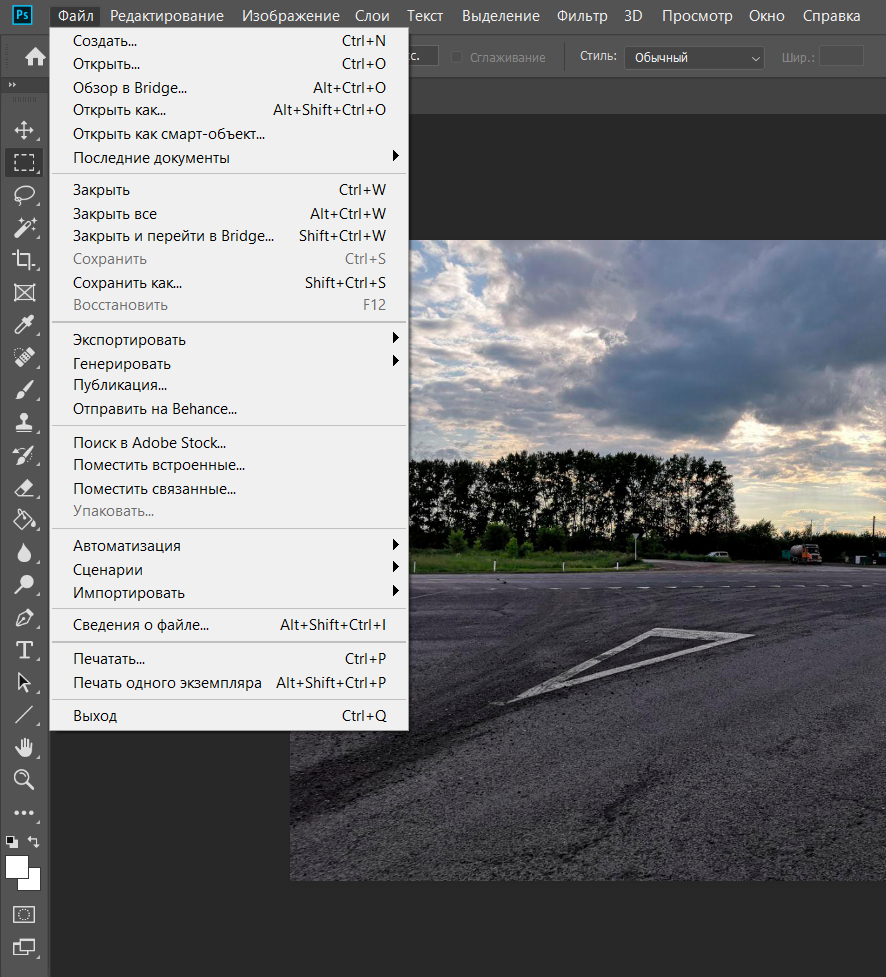 В шапке находится большое количество настроек — давайте кратко рассмотрим те, которые нам пригодятся в обработке фотографий.