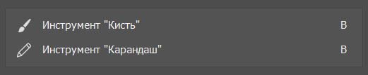 Как выглядят значки в приложении Фотошоп. Справа — стандартный вариант быстрой клавиши